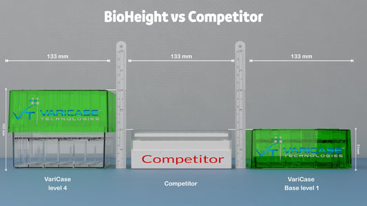 Traditional containers waste vertical space. Fixed-height designs force organizations to manage multiple SKUs, underutilize storage, and absorb unnecessary cost.The Varicase™ Variable Height Technology (VHT™) Platform changes the physics of storage. Within a fixed footprint, VHT dynamically adjusts internal height, more than doubling usable vertical space and effective volume—without increasing floor space, freezer count, or handling complexity.One container replaces four or more fixed-height boxes. Capacity increases immediately. Waste disappears. Storage becomes adaptive instead of static.This is not a single product.It is a platform-level redefinition of container economics, applicable across life sciences, supply chain, industrial, and consumer markets—wherever volume, efficiency, and sustainability matter.